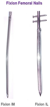 The Fixion Proximal Femur Nailing System is designed to treat proximal femur fractures. It combines an expandable nail for the femoral shaft with a dynamic expandable hip peg for stability within the femoral head.