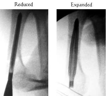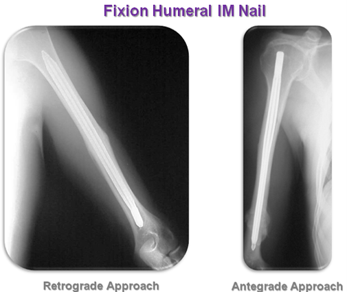 The Fixion expandable humeral nail is a unique intramedullary system that uses a hydraulic mechanism to achieve self-locking fixation. Inserted in a deflated state, it is expanded with pressurized sterile saline (up to 70 Bar) to create a tight interference fit along the inner cortex of the humerus. This expansion provides rotational and axial stability, significantly reducing operative time and fluoroscopy exposure by eliminating the need for traditional distal interlocking screws.
