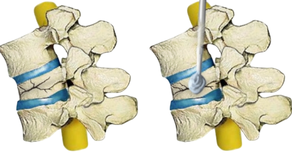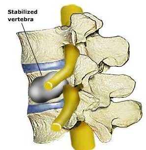 Inject bone cement directly into the fractured vertebra. After injected, the cement hardens in about 10 minutes, congeals the fragments of the fractured vertebra, and provides immediate stability.